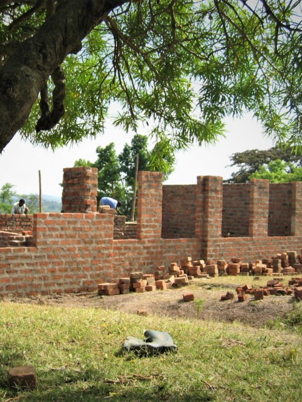 Ett år efter mitt första besök i Bishozi kunde vi återvända för att bygga ett helt nytt skolhus med två klassrum, kontor och förråd. Vi var 5 medlemmar från vår förening i Sverige som reste dit på egen bekostnad tillsammans med några kulturarbetare från Ugandas huvudstad Kampala. Detta blev förövrigt startskottet för allt som sedan hänt i våra projekt.